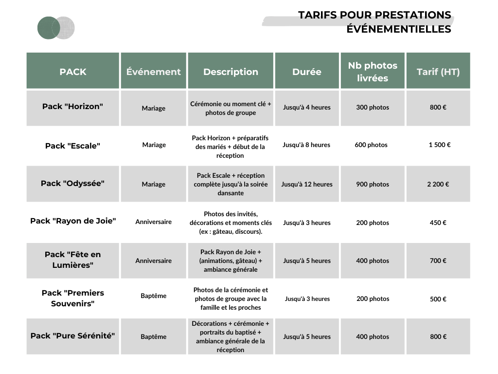 Mes tarifs sont affichés pour la plupart des prestations. Pour les événements d’entreprise et/ou autres demandes sur mesure, un devis personnalisé reste la meilleure option. Contactez-moi via ma page Contact pour en discuter !