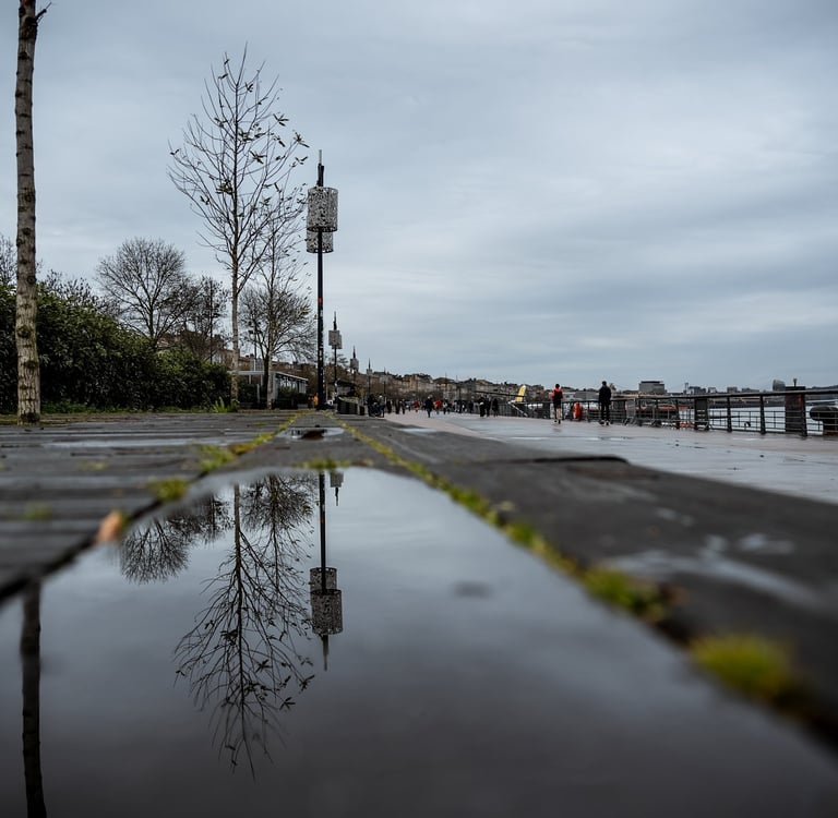 Ici j'ai créé une série de photos que j'ai appelé " À Fleur d’Eau " : j'ai pris la perspective du sol, en essayant de jouer avec les flaques d'eau!