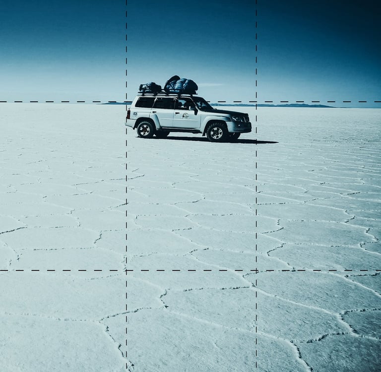 La règle des tiers : Imaginez votre image divisée en neuf sections égales. Placez vos sujets sur les lignes ou aux intersections pour un rendu équilibré (Paramétrable sur téléphone et appareil photo).